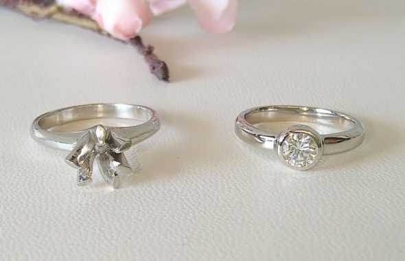 立て爪のダイヤモンドリングを嵌めやすいデザインにリフォーム