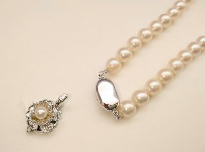 糸の状態が大丈夫か。そんなチェックもさせていただきます。いざという時に慌てないためにも、どうぞお気軽に貴女の真珠のネックレスの点検をお申し付けくださいね。