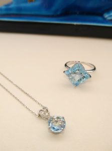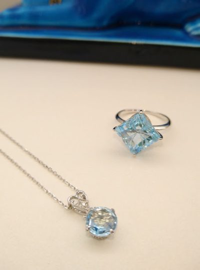 本日はシバタにあるブルートパーズの指輪とペンダントをご紹介します