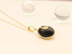こちらのペンダントはカラーサファイヤのジュエリーでお馴染みのジュエリーブランド『ジュネ』の商品です。コズミック・ブラウンと名付けられたシリーズなのですが、名前の通りに宇宙の神秘を感じさせてくれます。
