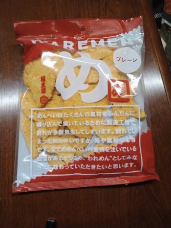 すっかり博多のお土産として定番になった博多めんべい。明太子をおせんべいにしたようなお菓子で、我が家は大好物です。利用している生協でも販売されるので、博多に行かずとも・ポチっとぜずともゲットできます。でも、食べる度に罪悪感もありまして・・・