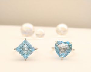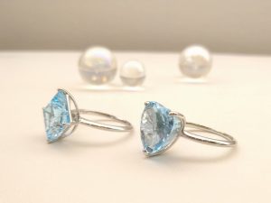 今日ご紹介したブルートパーズに限らず、アクアマリンやブルージルコン。ブルーの石の魅力は、やはり清涼感なのかなと思います。見ているだけで清々しくスッキリした気持ちになります。この寒い季節に余計に寒くなるんじゃないかしら・・・と写真を撮りながら危惧したシバタですが、この指輪の放つ可愛らしいオーラには心配無用だったなと思った次第です。