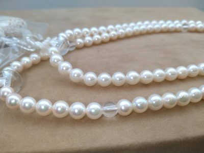 5.5mm~6.0mmのアコヤ真珠を使った本連のアコヤ真珠の念珠です。