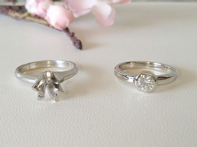 【羽島市宝石リフォーム実例】立て爪ダイヤモンドリングを嵌めやすいデザインにリフォーム