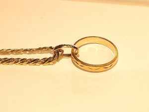 指輪をネックレスの通します